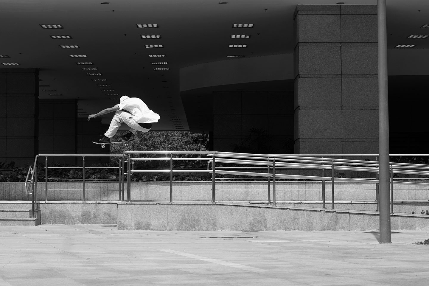 When talking about skateboard photography in Brazil the name of Ronaldo Land, AKA Jesus, is one of the top of the list. Skate by the Shadows tells the story of the skater, videomaker and photographer who became a reference with his authentic clicks and reveal a Rio de Janeiro monochrome, geometric and incredibly urban. The wonderful city, of imperial architecture, is resignified under the hard light and through the lenses of this Carioca talent.